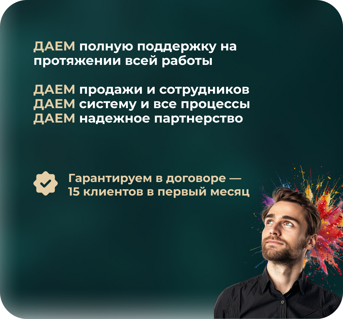 Нет. Мы передадим вам готовую систему по организации процессов и управлению персоналом. Это позволит вам управлять, а не работать руками.