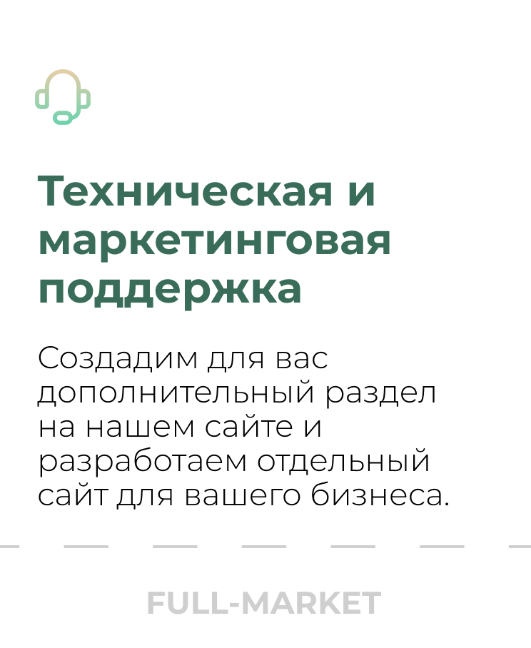 Мы поддержим вас информационно на всю нашу аудиторию. FULL-MERKET — бренд, который уже зарекомендовал себя на рынке за счет высокого сервиса и автоматизации процессов.